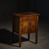 Шпонований креденс з заокругленими кутами та склом з квітами