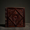 Кутова кахля коричневого кольору з багатим орнаментом, якому поєднанні геометричні форми та квіткові мотиви