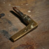 Латунна дверна клямка вигнутої пласкої форми і основою під лодоню для комфортного натискання.