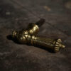 Латунна клямка на двері багатогранної форми з булькою на закінченні, на квадраті