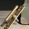 Латунна віконна асиметрична ручка з видовженою овальною накладкою.