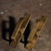 Латунна заокруглена ручка на вікно т-подібної форми з патиною на маленькій фігурній накладці виробництва Яна Дашека. Розміри: 100х32 ручка, 60х15 накладка