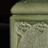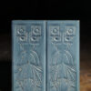 Кахля світло-синього кольору в стилі орнаментальної сецесії. Має на собі цікавий симетричний взор закручених листочків та забрунькованих квітів.